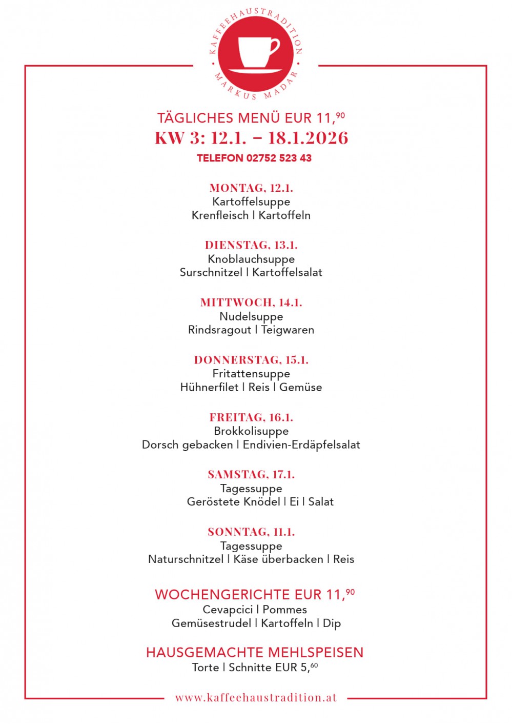 Genießen Sie den eigenen , frisch gerösteten Hochlandkaffee, traditionelle alt Wiener Kaffeehausgerichte und hausgemachten Mehlspeisen. Oberkellner Chris lädt zum Verweilen in den Abendstunden. Die große Auswahl an Zeitungen und Magazinen bereichert Ihre Pause.
